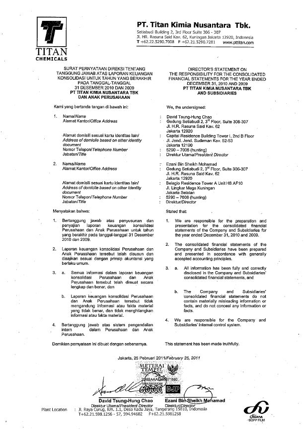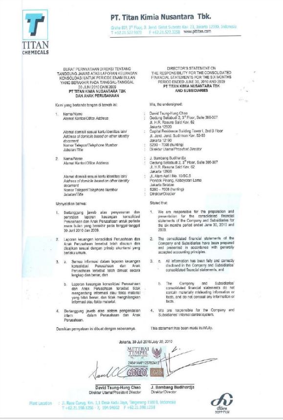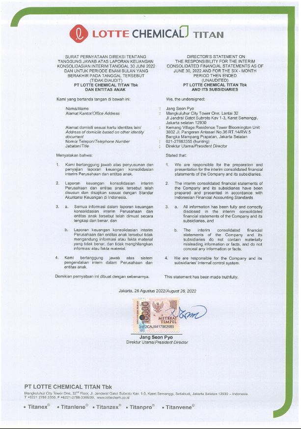 to peruse the management status and financial results of PT LOTTE CHEMICAL TITAN Tbk